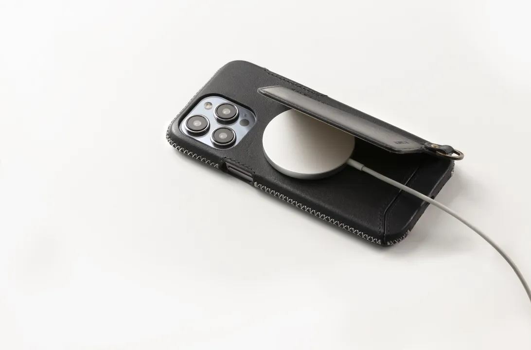 Genuine Leather multi-functional Case for iPhone 15シリーズ(ハンドストラップ付)iPhone 14対応 iPhone 15 Plus/Black