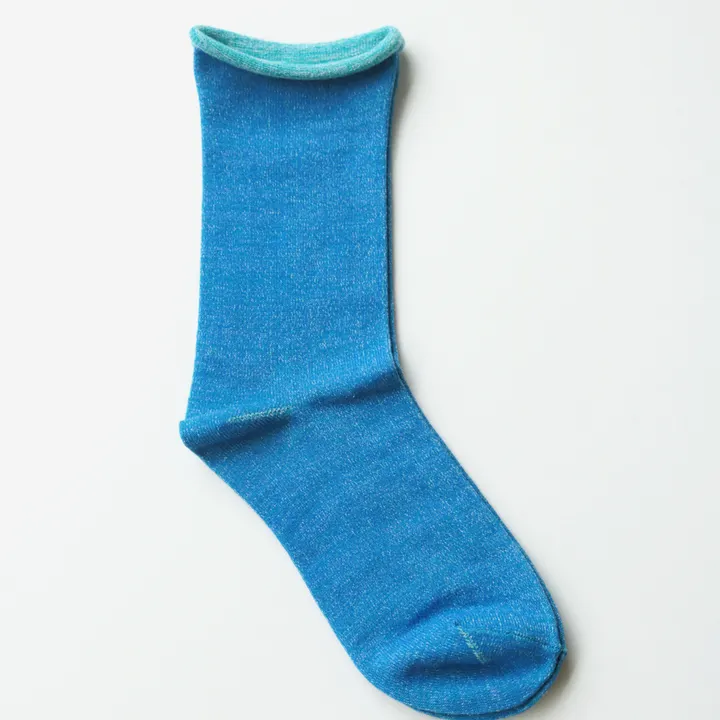 【内側コットン】ゴムなし クルーソックス【1Pソックス】 【レディース】 カラー:55 ブルー サイズ:S(22.5~24.5cm)