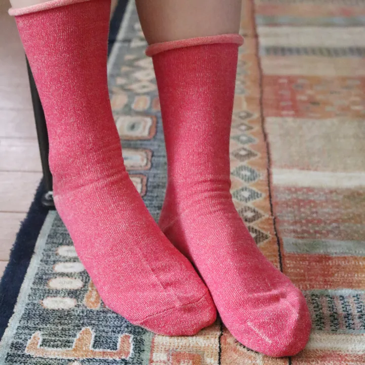 【内側コットン】ゴムなし クルーソックス【1Pソックス】 【レディース】 カラー:25 ローズピンク サイズ:S(22.5~24.5cm)