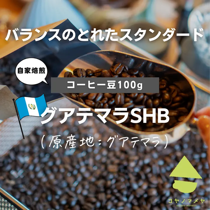 ■コーヒー豆 グアテマラ SHB(中深煎り) 当店ではスタンダードな位置付けの定番商品です。 甘い香りに深みのあるコク。コーヒー好きには定番の銘柄。 -SHBとは?- グァテマラでの珈琲の等級は産地の高度で7等級に分類されています。 最高級グレードの豆は標高1350m以上と決められてSHB(ストリクトリー・ハードビーン)となります。 コーヒー豆の特徴については【当店の焙煎のねらい】をご参照ください。 ■焙煎 ハンドピックにより、欠点豆をひとつひとつ取り除き、丁寧に焙煎した自家焙煎のクラフトコーヒーです。 雑味のなくすっきりした味わいをぜひお楽しみください。 ご注文いただいた後に焙煎します。 ■OEM ご要望にあわせてOEM制作も承っています。 ロゴやメッセージを入れて納品させていただいており、大変ご好評いただいています。 事業者様のコーヒー商品やノベルティ、お世話になっている方へのプレゼント、 結婚式等のプチギフトなど様々なシーンでご利用いただけます。 チャットにてご要望をお伺いしますのでご相談ください。 ※事前相談を行っていないご注文は、誠に勝手ながらご遠慮頂いております。 恐れ入りますが、ご理解頂ければ幸いです。