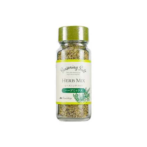 香り豊かなハーブを中心にブラックペッパーとガーリックをアクセントにミックスしました。イタリアンから和食まで様々なお料理にご利用いただけます。 内容量:48g 【原材料】食塩、香辛料(胡椒、ガーリック、ジンジャー、オレガノ、マジョラム、セージ、タイム、バジル、ローズマリー)、でん粉、調味料(アミノ酸)<シーズニングソルト オリジナルレシピ>★キャベツとシーフードのパスタ★パスタ160gキャベツ4枚プチトマト2個ホタテ貝柱6個エビ(小)12尾塩適量オリーブオイル大さじ2にんにく1片鷹の爪2個シーズニングソルト ハーブミックス小さじ2 <作り方> 1.ホタテを横半分に切り、エビは背わたをとり軽く切れ目を入れる。 2.湯に塩を入れパスタをゆでる。 3.パスタをゆであげる直前に一口大に切ったキャベツを入れ、しんなりさせる。 4.フライパンを弱火で熱し、オリーブオイルでにんにく・鷹の爪をいため香りを出す。 5.フライパンにホタテ・エビを入れシーズニングソルト ハーブミックスを加え軽く炒める。 6.5にパスタ、キャベツを入れ、ゆで汁で少しのばしながらあえる。 7.皿に盛りトマトを飾る。