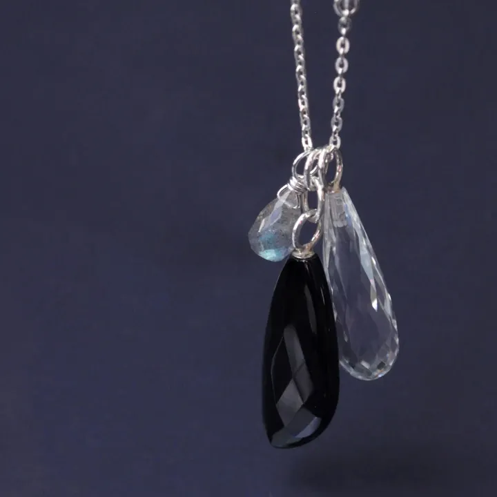 「anq.」SV925 クォーツ/ブラックアゲート/ラブラドライト ネックレス クォーツ/ブラックアゲート/ラブラドライト