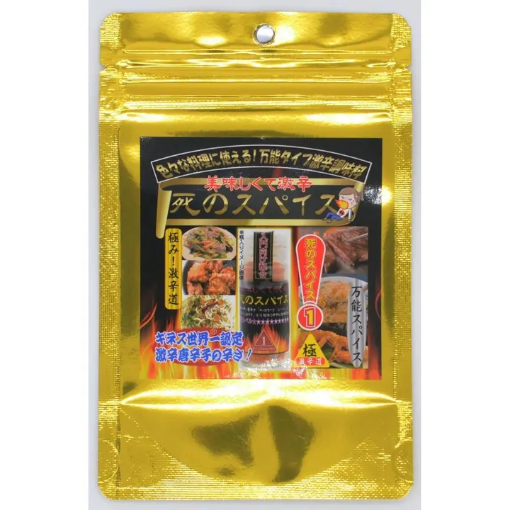 ★テレビ番組(有吉ゼミなど)や、YOUTUBEなどの激辛企画で、しばしば紹介されている超激辛スパイスです! ★ギネス世界一認定の激辛とうがらしを使用!(キャロライナ・リーパー、ブートジョロキア) ★美味しくて激辛「ただ辛いだけではありません」15種類以上のスパイスをバランスよく配合 ★肉料理や揚げ物、スナック菓子などが手軽にプロの味。冷凍食品にもそのままかけるだけで簡単グレードアップ! ★辛い食べ物がお好きな方は是非一度お試し頂きたいスパイスです! 【使用方法】 美味しくて激辛なスパイス調味料です。から揚げ、ステーキ、焼き肉、チキンステーキ、やき鳥、生姜焼きなどの肉料理やパスタ、ポテトフライ、ピラフ、フライドチキン等にそのままかけてお使いください。BBQにも最適です。ポテトチップス、ポップコーン等のスナック菓子にそのままかけても大変美味しいです。 【原材料・成分】 塩(岩塩)、唐辛子(キャロライナ・リーパー、ブートジョロキア)、にんにく、胡椒、クミン、コリアンダー、オレガノ、セージ、アミノ酸、他 【保存方法】 直射日光、高温多湿を避けて保存してください。
