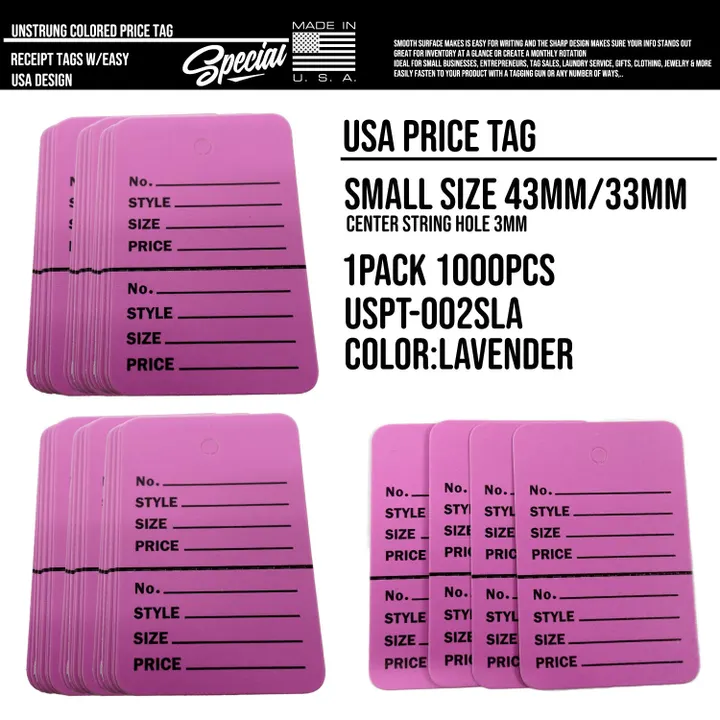 USA アメリカ プライスタグ 値札 下げ札 紙タグ カラータグ 価格タグ ビンテージ 古着 アパレル店 雑貨店 店舗用品 フリーマーケット イベント 1000枚入り : USPT-002 S LAVENDER 1000枚入り