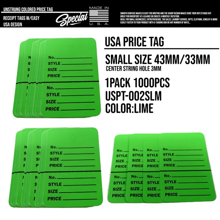USA アメリカ プライスタグ 値札 下げ札 紙タグ カラータグ 価格タグ ビンテージ 古着 アパレル店 雑貨店 店舗用品 フリーマーケット イベント 1000枚入り : USPT-002 S LIME 1000枚入り