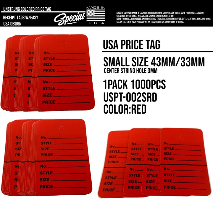 USA アメリカ プライスタグ 値札 下げ札 紙タグ カラータグ 価格タグ ビンテージ 古着 アパレル店 雑貨店 店舗用品 フリーマーケット イベント 1000枚入り : USPT-002 S RED 1000枚入り