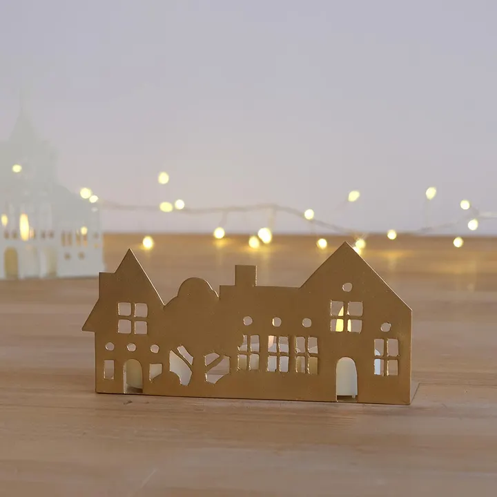 絵本の世界から飛び出してきたような、西欧を思わせる街並みがモチーフのオブジェ。 TINで出来たシルエットオブジェは、後ろ側にLEDキャンドルを飾れば、幻想的な影絵を楽しむことができます。 部屋の明かりを薄暗くして、キャンドルを灯し、素敵なクリスマスを演出してみてください。 〇107958 パーティーやインテリアを彩る LED ティーライト キャンドル 6個入 〇107957 パーティーやインテリアを彩る LEDライト キャンドル ボーティブ 2個入 ブリキ(BLIK)は、錫(TIN)でメッキを施した鉄板で、錆びないように薄いスズの膜で鉄板を処理し、表面を織り上げたものを指します。 ブリキ素材は、美しい表面と強固な耐久性を持つため、家具や装飾品などの家庭用品としてよく用いられます。 また、オイルやペイントなどで仕上げることで、手触りも良くなり、防水や防塵の性質も備えています。 shesayのブリキアイテムは職人によるハンドメイドで生産しています。 【インテリア】【雑貨】【クリスマス】