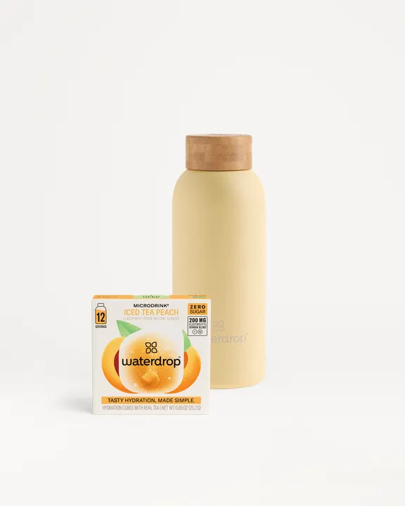 12個入り・天然の茶葉、ビタミン、砂糖不使用 天然エキス 栄養価の高いビタミン 砂糖不使用 ヴィーガン ローカロリー 真空断熱スチールボトル 商品説明 ピーチの甘くフルーティーな味わいと、紅茶の優しい酸味との絶妙なコラボを楽しめます。二重構造のステンレス製で、飲み物を最大24時間保冷、または12時間保温します。400mlからお好みのデザインをお選びください。 サステナブルな飲み物の選択 waterdropregなら最小限のパッケージで、500mlペットボトル飲料と比べて プラスチックを最大98%削減。 waterdropregの使い方 水をもっと飲むためのシンプルな3つのステップ: WATER: 400-600mlの冷水 DROP: キューブを溶かす ENJOY: 爽やかでフルーティーな水を楽しむ 最高の果実エキスと本物の茶葉 waterdropreg Microdrink ICE TEA PEACH ハイドレーションドロップ 12個 ・紅茶・ピーチ ・天然果物・植物エキス ・栄養価の高いビタミンC/B3 ・ローカロリー ・砂糖不使用 ・人工保存料不使用 ・グルテンフリー ・ヴィーガン ・低カフェイン含有量(1.8mg/100ml) ・直射日光を避け、乾燥した涼しい場所で保存してください。 原材料および栄養成分情報 紅茶エキス、マンゴーエキス、マンゴー果実パウダー、甘味料、ビタミンを配合した天然フレーバーからピーチの風味がする爽やかなドリンクを作るために使用される発泡性キューブ。 平均栄養価 500 ml 当たり エネルギー 5.0 kcal タンパク質 0 g 総脂質 0 g 炭水化物 0.5 g 食塩相当量 0.2 g ビタミンC 18.0 mg ナイアシン 3.2 mg 原材料:茶エキス、イヌリン、シトラスファイバー、マンゴーパウダー/pH 調整剤、炭酸 Ca、香料、甘味料(スクラロース)、ビタミン C、ナイアシン 25,2g(2,1g×12個分) 最高の原材料を詰め込んだキューブ 最高品質の果物や植物のエキスと本物のお茶で作られたICE TEA PEACHで、いつもの水をフルーティーで爽やかなドリンクに変身! ピーチ ジューシーで甘く、果実味豊か。 紅茶 ほどよい苦味と香ばしさ。 ビタミンC 免疫機能をサポート ナイアシン エネルギー代謝の維持を促進する効果があります。 爽やか&刺激的! 実用的なデザインで持ち運びも簡単!家族や友達とシェアするのにも最適です。 自分用にも、みんなで一緒に楽しむ場面にも幅広くお使いいただけます!