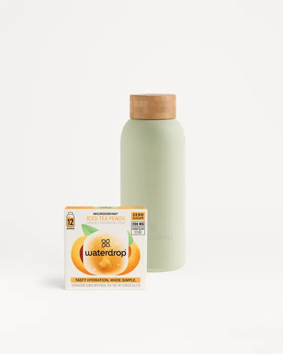 12個入り・天然の茶葉、ビタミン、砂糖不使用 天然エキス 栄養価の高いビタミン 砂糖不使用 ヴィーガン ローカロリー 真空断熱スチールボトル 商品説明 ピーチの甘くフルーティーな味わいと、紅茶の優しい酸味との絶妙なコラボを楽しめます。二重構造のステンレス製で、飲み物を最大24時間保冷、または12時間保温します。400mlからお好みのデザインをお選びください。 サステナブルな飲み物の選択 waterdropregなら最小限のパッケージで、500mlペットボトル飲料と比べて プラスチックを最大98%削減。 waterdropregの使い方 水をもっと飲むためのシンプルな3つのステップ: WATER: 400-600mlの冷水 DROP: キューブを溶かす ENJOY: 爽やかでフルーティーな水を楽しむ 最高の果実エキスと本物の茶葉 waterdropreg Microdrink ICE TEA PEACH ハイドレーションドロップ 12個 ・紅茶・ピーチ ・天然果物・植物エキス ・栄養価の高いビタミンC/B3 ・ローカロリー ・砂糖不使用 ・人工保存料不使用 ・グルテンフリー ・ヴィーガン ・低カフェイン含有量(1.8mg/100ml) ・直射日光を避け、乾燥した涼しい場所で保存してください。 原材料および栄養成分情報 紅茶エキス、マンゴーエキス、マンゴー果実パウダー、甘味料、ビタミンを配合した天然フレーバーからピーチの風味がする爽やかなドリンクを作るために使用される発泡性キューブ。 平均栄養価 500 ml 当たり エネルギー 5.0 kcal タンパク質 0 g 総脂質 0 g 炭水化物 0.5 g 食塩相当量 0.2 g ビタミンC 18.0 mg ナイアシン 3.2 mg 原材料:茶エキス、イヌリン、シトラスファイバー、マンゴーパウダー/pH 調整剤、炭酸 Ca、香料、甘味料(スクラロース)、ビタミン C、ナイアシン 25,2g(2,1g×12個分) 最高の原材料を詰め込んだキューブ 最高品質の果物や植物のエキスと本物のお茶で作られたICE TEA PEACHで、いつもの水をフルーティーで爽やかなドリンクに変身! ピーチ ジューシーで甘く、果実味豊か。 紅茶 ほどよい苦味と香ばしさ。 ビタミンC 免疫機能をサポート ナイアシン エネルギー代謝の維持を促進する効果があります。 爽やか&刺激的! 実用的なデザインで持ち運びも簡単!家族や友達とシェアするのにも最適です。 自分用にも、みんなで一緒に楽しむ場面にも幅広くお使いいただけます!