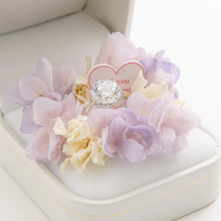 ※プリザーブドフラワーは生花に特殊な加工を施し、枯れる事がなく数年美しい状態を楽しめる素材です。ドライフラワーは自然の花・葉などを乾燥させた素材です。どちらも保存状態により多少の色変わりがございます。 ※配送の際、稀に微量の素材塵がでる可能性がございます。お手数ですが、遠目からドライヤーの弱冷風を当てたり、ティッシュなどの柔らかい布等で吹き払ってください。 ※高温多湿の場所で保存しますと、他所への色移りの恐れがございます。プロポーズ前・特にプロポーズ成功後はフタを開けて保存いただきますよう、お願いたします。 ※リースは繊細な作りとなっておりますので、リングケースの開閉等のお取り扱い際には、充分にご注意ください。 ※シルバー商品は空気中に含まれる成分・汗などに反応し、変色する特性がございます。月に一度ほど柔らかい布で拭くなど、お手入れください。 ※ネットでの販売はご遠慮ください。