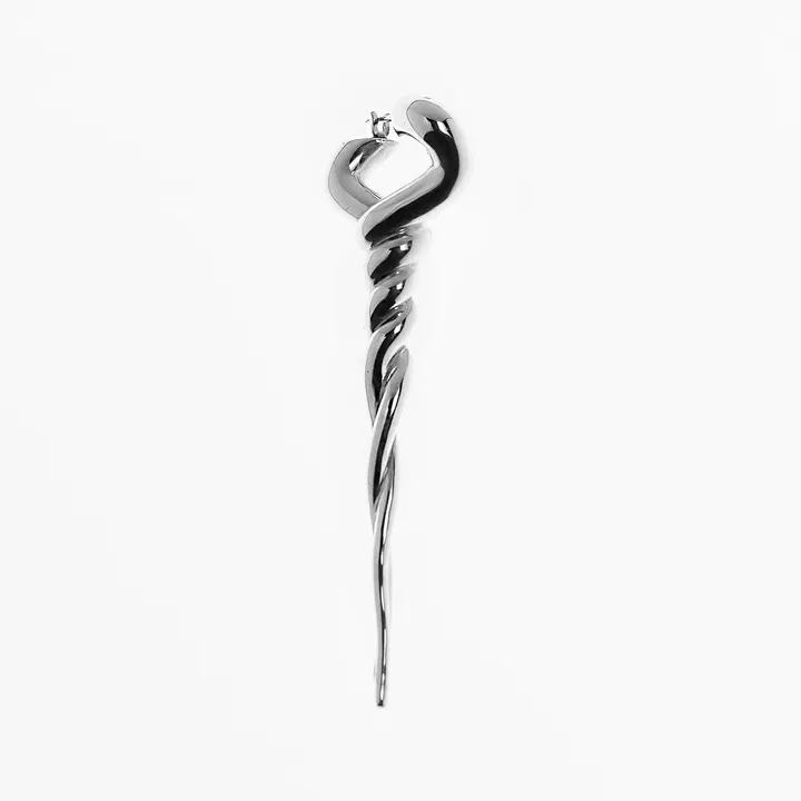 ●Description: 受注生産商品。 こちらは製作に3週~1カ月お時間を頂いておりますので、ご了承ください。 右耳用。どちらの耳でも着用可能ですが右耳での着用を推奨。 緊張と緩和。 1 個人の中で絡み合う、2 つの感情のように混ざり、溶け合う。 ヒンジ付きイヤリングのデザインが適度に揺れ、感情的な反応を呼び起こす。 ●Material: Sterling Silver925(ロジウムコーティング) ●Details: 全長ー62mm 幅ー18mm~1.5mm 重さー10g