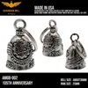アメリカ製ガーディアンベル社製ガーディアンベルです。 MADE IN USA アメリカ製 交通安全 魔除け 御守り ガーディアンベル アメリカのライダーの間には、事故や、転倒の原因は「道路にひそむ悪魔」によるいたずらだという伝説があります。悪魔は走る者に悪戯やトラブルを運んできます。このベルは美しい音色で悪魔たちを追い払うと言われ愛されています。そんな悪魔のいたずらを防ぎ、御守りとなるのが、守護者のベルという意味を持つガーディアンベル。 日本でも鈴の音(ね)は神道では魔除けの音と言われています。ピューター製の鈴でいい音色でガーディアンベルはデザインも様々あります。 またガーディアンベルにまつわる伝説として、プレゼントとして送られたベルの効果は、自分で手に入れたものの2倍になると言われています。 それゆえに彼氏・彼女・友達・家族へのプレゼントとしての人気も非常に高まっています。 シルバーアクセサリーのようにおしゃれに装着できて素敵な音色を奏でるガーディアンベル。 バイカー以外にも自転車や旅・交通安全のお守りとしてお使いいただけます。 カバン・ランドセル・キーホルダー・ペットの首輪等に付けてお使いください!! ※タイラップ等でバイクのフレームにも簡単に取り付けできます。 アメリカンモデルだけではなく、旧車ファン、レプリカライダーまで、さらにバイクだけでなく、自転車や車にもピッタリな御守りとなっています。 アクセサリーとしても人気で、アイディア次第で車体だけでなく、キーホルダーや鞄など、どこにでも付けておしゃれに楽しめます。