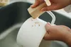 水をつけて擦るだけ、洗剤を使わずに汚れを落とします。