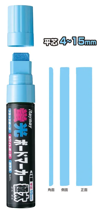 【数量限定セール対象品】 ブラックボード、ホワイトボード、ガラスなどに筆記可能なボードマーカーです。 特大文字や広い面の塗りつぶしに最適なサイズです。 あざやかな発色で退色しにくい顔料インクを使用しており、長時間の展示でも色をキレイに保ちます。 柔らかい布やティッシュにみずを含ませ、水拭きするだけで簡単に消字可能です。 乾くと乾拭きでは落ちなくなるため、書いたものがこすれずキレイな状態で掲示できます。 完全に乾いた状態であれば少しの雨でもインクが流れ落ちることはありません。