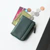 【ガバッと開いて視認性◎】レザーコインケース 薄型 L字ファスナー 小銭入れ / CC7 グリーン × グリーン