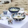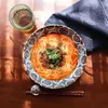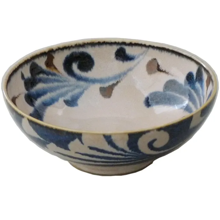 藍色と手描きの風合いを楽しむ器、ブラッシュブルー。 製造工程において色の濃淡や釉薬の流れ、柄のにじみなど、それぞれが違う出方になるのも特徴です。 それが個性となり唯一無二のものに。 手描きのような質感をお楽しみください。 深さがあってたっぷり入り、磁器で出来ているので軽くて丈夫なめん丼です。