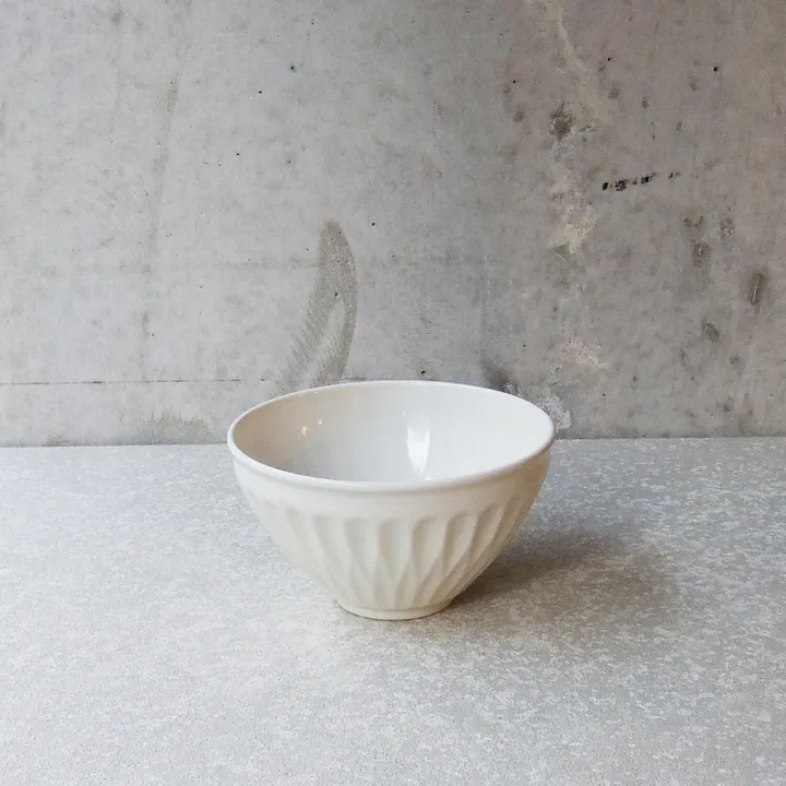 通常の食器(弊社比較)より20-30%の土の使用量を削減し、軽量化したどんぶりです。削ぎのデザインも軽量化のポイント。普段使いにちょうど良い軽量どんぶりです。