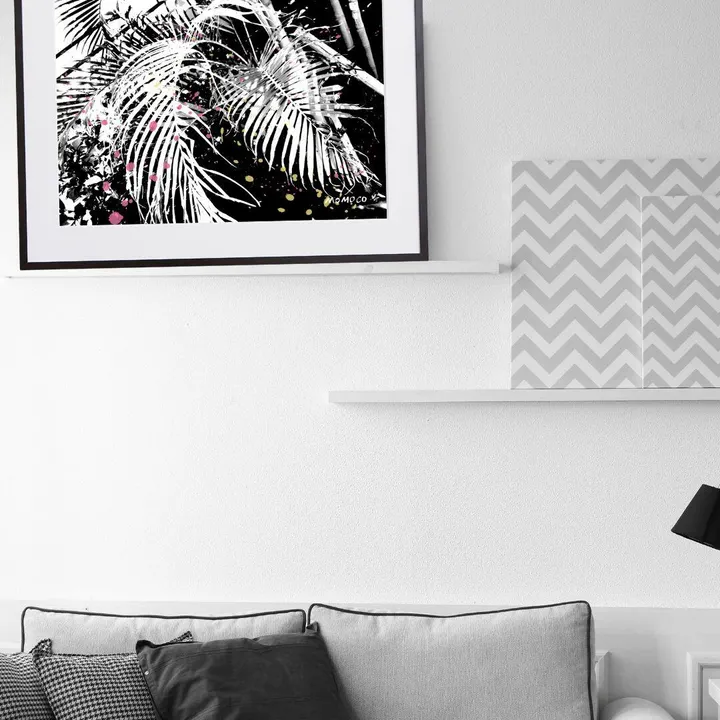 アーティスト -PROFILE- MOMOCO(モモコ) 「色」をこよなく愛する画家、ライブペインター。 躍動感あるアートにも関わらず、服を一切汚さず短時間で音楽と同時に描き上げる。そのパフォーマンスと巨大アートは観る人を魅了する。 前職は某有名ファッションブランドにてデザイナーとして活躍。その経験の中で養われた「色とデザイン」の絶妙なバランスを活かしつつ、トレンドを取り入れ進化し続けるアートを目指す!国内外問わず、精力的にアートと向き合い発信を続けている。 【作品について】 水をやる必要がない!観葉植物を壁に モノトーン白黒でシンプルな作品はアート購入初心者さんにもおすすめ 飾れば一瞬でおしゃれセンスフルな空間になります 作品名:NATURAL SUMMER I 手法:デジタル、イラスト ペーパー:高品質半光沢紙 マットカラー:白 マット*:DXホワイト芯 100%バージンパルプ/PH7・中性紙(2mm厚) ※全てのアートにマットがつきます フレームカラー:黒、白、無垢(3種類から選択) ※マット付のため通常とはフレームサイズが異なる規格となります。 【マット*とは?】 アートポスターの周りに挟んだ厚紙の事。 マットを使わない時に比べ余白により広がりが生まれ、作品の新たな一面を引き出せ作品の見栄えがグッと良くなります。また、額縁のガラス面と作品が直接触れたままにしておくと、くっついて作品を傷つけることがあります。マットを使用することでガラスと作品の間に空間ができ、作品を保護することができます。ブランドコンセプトにより全てのアートにマットがつきます。 ー ファッションのようにアートを ー 私達が掲げるコンセプトです! 毎日着替えるファッションの様に、アートも気軽に飾り変えて欲しい... 一旦飾り終えたアートにも光を当ててほしい... ポスター単体、またはリピートで中身だけのポスターを購入された方に"専用のハンガー"をセットでお届け。 「今までに無い!新しいアートの飾り方を提案」 飾る事がなくなった前のアートをハンガーにかけて洋服と一緒にかけてもらう。 その日の気分や、モチベーションですぐに取り換えられる様に。 もちろん、魅せる収納としても今までにないおすすめの飾り方です。