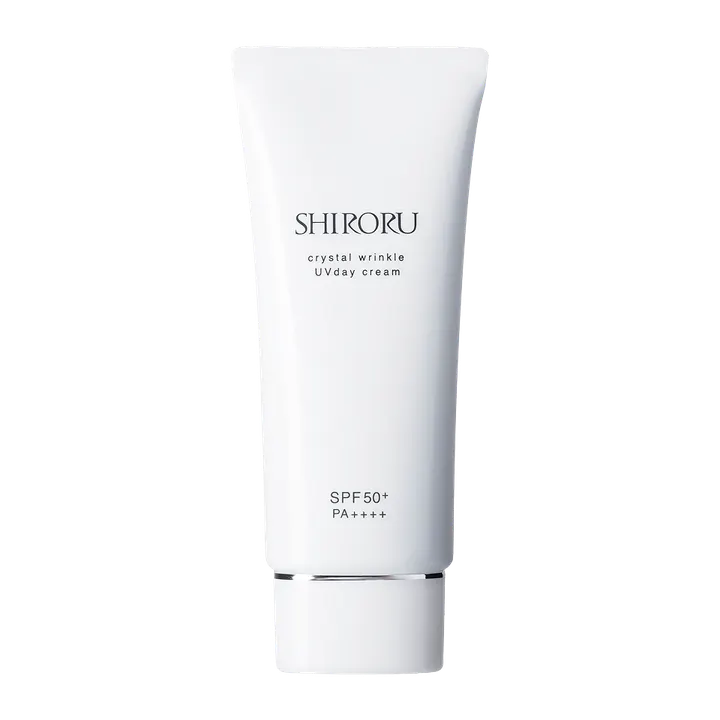 クリスタル リンクルUVデイクリーム[医薬部外品 ]日焼け止め / 40g =========================== 美白*1×シワ改善×肌荒れ*2予防 まるで美容液のような日焼け止め ------------------------------------- 有効成分ナイアシンアミドが真皮まで届き、 美白*¹とシワ改善で お肌の透明感を引き出します。 国内最高値*3のSPF50+、PA++++を採用。 白浮きせず、しっかりとUVをブロック。 *1 メラニンの生成を抑え、シミ、そばかすを防ぐ *2 肌荒れを防ぐ *3 日本化粧品工業会基準 美白*1×シワ改善×肌荒れ*2予防 まるで美容液のような日焼け止め ------------------------------------- ### スーッと伸びてツヤ肌 日焼け止め特有のベタつきなし! 日焼け止め特有のベタつき・白浮き・乾燥なし。 乾燥を防ぐとともに、毛穴を目立たなくするシリカパウダーで美しい仕上がりをサポートします。 ### 高い保湿効果で スキンケア後のようなしっとり感 リッチなテクスチャーが肌にぴったり密着し、うるおいを長時間キープ。まるでスキンケアした後のようなしっとり感が一日中続きます。 夜は洗顔で簡単にオフできるため、お肌に負担をかけずに毎日快適に使用できます。 【全成分】 [有効成分] ナイアシンアミド、グリチルリチン酸ジカリウム [その他の成分] ウメ果実エキス,加水分解コンキオリン液,シャクヤクエキス,コラーゲン・トリペプチドF,ヒアルロン酸ナトリウム(2),加水分解ヒアルロン酸,天然ビタミンE,濃グリセリン,1,3-ブチレングリコール,1,2-ペンタンジオール,ジプロピレングリコール,キサンタンガム,カルボキシビニルポリマー,ベンガラ,無水ケイ酸,水酸化カリウム,グリセリンモノ2-エチルヘキシルエーテル,セバシン酸ジイソプロピル,セバシン酸ジ2-エチルヘキシル,コハク酸ジ2-エチルヘキシル,安息香酸アルキル(C12~C15),サリチル酸2-エチルヘキシル,2,4-ビス-[{4-(2-エチルヘキシルオキシ)-2-ヒドロキシ}-フェニル]-6-(4-メトキシフェニル)-1,3,5-トリアジン,2,4,6-トリス[4-(2-エチルヘキシルオキシカルボニル)アニリノ]-1,3,5-トリアジン,2-[4-(ジエチルアミノ)-2-ヒドロキシベンゾイル]安息香酸ヘキシルエステル,アラキルグルコシド・アラキルアルコール・ベヘニルアルコール,ベヘニルアルコール,自己乳化型モノステアリン酸グリセリル How to Use 使い方 -------------- 1. お肌に馴染ませる スキンケア後、適量(パール1粒大)をムラなく丁寧に伸ばします。 2. こまめに塗り直す 効果を保つため、汗をかいた後やタオルなどで落ちてしまった後は、こまめに塗り直してください。 ※お肌に合わないときは、ご使用をおやめください。 Steps of Skincare スキンケアの手順 -------------------------- 1. 化粧水 クリスタル エッセンスウォーター[医薬部外品] 2. クリーム クリスタル モイスチャークリーム[医薬部外品] 3. 日焼け止め クリスタルリンクル UVデイクリーム[医薬部外品]