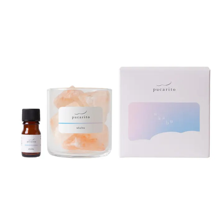 pucarito(プカリト) こころも プカリと じゆうな わたし 天然精油配合のフレグランスシリーズ。 気分に合わせて選べる、香りとアイテム。 香りの強さを調整できるディフューザー。 玄関やベッドルーム、デスク周りなどご自身の周囲の空間を香らせることに適しています。 天然の色、形を楽しめるクリスタルはインテリアとしてもお使いいただけます。 ukabu(ウカブ) 透き通るシャボン玉のように、ふっと心も浮かんだらいいな。 ジャスミンとすずらんの心地よい香りに果実の甘さを加えた、透明感のある爽やかな香り。