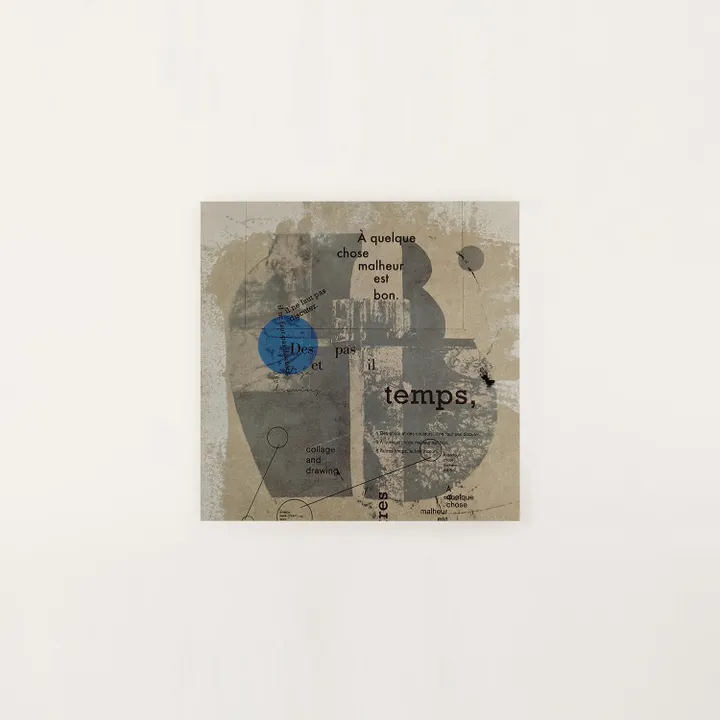 ※フレームは別売りです 「禍を転じて福となす」「時代が変われば風習も変わる」——フランスの格言が層を成すように刻み込まれた、コラージュ&ドローイングの融合作品です。グレーを基調とした落ち着いた色調の中に、大きな文字の造形と「temps,(時)」の言葉が浮かび上がり、一点だけ置かれた鮮やかなブルーの円が静かな存在感を放ちます。時間と変化をテーマにした、奥行きのある一枚です。 <デザイナープロフィール > 井上陽子 (yoko inoue) 京都造形芸術大学、洋画コース卒業。世界中を旅して目にした風景や日本での日常の景色を、自身というフィルターを通し、ドローイングやコラージュ作品として発表している。通常の創作活動以外にも、書籍表紙やCDジャケットへの作品提供、著書の出版など、さまざまな境界を越えて活動中。 <About the Paper> 発色の良さと紙の風合いという相反する性質を高いレベルで両立させた高級印刷用紙で、FSC認証※も取得しているヴァンヌーボV-FSの最厚紙を使用。 ※FSC認証とは「森林の管理や伐採が環境や地域社会に配慮して行なわれているかどうか」を評価・認証し、そうした森林に由来する製品(適正管理された森林木材による製品)であることを証明するものです。運営は、NGOであるFSC(Forest Stewardship Council®:森林管理協議会 本部ドイツ)が行っています。 <サイズバリエーション> ・200×200mm ・300×300mm