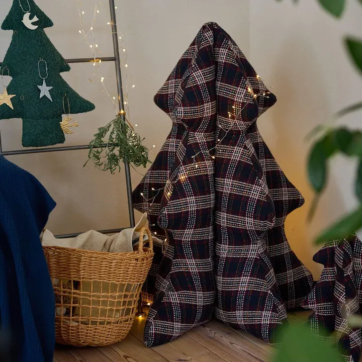 赤いチェックが特徴的なツリー型クッション。 クリスマスシーズンにぴったりのアイテムで、お部屋を華やかに彩ります。 Lサイズは2〜3歳のお子様くらいの高さ。置くだけで目を引く存在に。 お子様が抱きしめたり、クッションの前で写真を撮ったりして、クリスマスの思い出を楽しむことができます。 さらに、ツリーの先端にトッパースティックを差し込んで、アレンジも自由自在。 シンプルながらも可愛らしいデザインで、クリスマスのインテリアにぴったりなアクセントになります。 お部屋に置くだけでクリスマス気分が盛り上がり、家族みんなで楽しめるアイテムです。