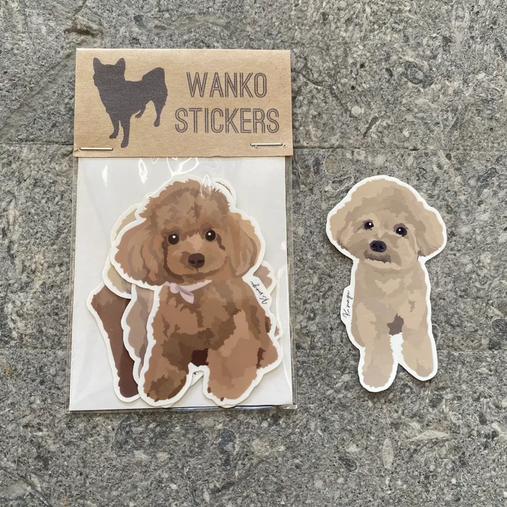 【オリジナルイラスト】 耐水ステッカー わんこシール シール交換・プレゼントにも人気 ランダムステッカー トイプードル(ブラウン) / 4種類