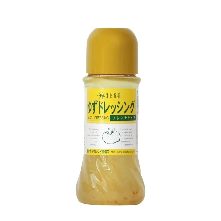 四国山地でとれたゆずをたっぷりと使ったさわやかなフレンチドレッシング 柚子の果汁とジャム状に加工した皮で見た目も味もワンランク上のゆずドレッシングです。 「ゆず」といえば、柚子味噌やゆずポン酢を思い浮かべる方が多いのではないでしょうか? ほだか村の「ゆずドレッシング」はちょっと違います。 ノンオイルではなくて、あえてオイルを使い、柚子果汁のきれいな色を再現しています。 柚子は果汁だけでなく、ジャム状に加工した皮も使うことで見た目も味もアップさせました。 【美味しいお召し上がり方】 サラダ以外にも冷奴・湯豆腐また肉料理の和風ソースとしてもご利用いただけます。 サラダの他、スパゲティのソースや、炒め物、肉料理にもお使いいただけます。 塩味の焼き鳥にかけたら、美味しいですよ。