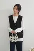 KNGV608-ボタンたくさんのVネックベスト BLACK/M