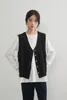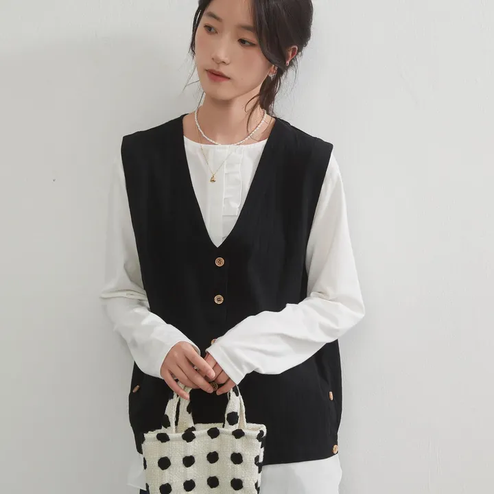 KNGV608-ボタンたくさんのVネックベスト BLACK/L