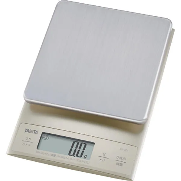水・牛乳の容積計量が可能な「mlモード」付で計量カップよりも正確な計量が可能。収納に便利なケース付。ステンレス皿は取り外し洗えます。