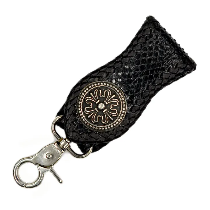 LEATHER BELT KEYHOLDER 本革 蛇革 スネーク レザーベルトループ キーホルダー ハンドメイド : THBL-008 008A BLACK