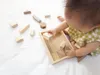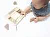 ひのきが香る、積み木。 箱には図面が書いてあるので、遊んだあとのお片付けがパズル感覚で身に付きます。 遊びながら図形を学んで、想像力やバランス感覚を養います。 セット内容:箱 1個  積み木 14個 対象年齢:1歳6ヶ月~ ※CEマーク取得商品 ※ST規格に準拠