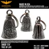 アメリカ製ガーディアンベル社製ガーディアンベルです。 MADE IN USA アメリカ製 交通安全 魔除け 御守り ガーディアンベル アメリカのライダーの間には、事故や、転倒の原因は「道路にひそむ悪魔」によるいたずらだという伝説があります。悪魔は走る者に悪戯やトラブルを運んできます。このベルは美しい音色で悪魔たちを追い払うと言われ愛されています。そんな悪魔のいたずらを防ぎ、御守りとなるのが、守護者のベルという意味を持つガーディアンベル。 日本でも鈴の音(ね)は神道では魔除けの音と言われています。ピューター製の鈴でいい音色でガーディアンベルはデザインも様々あります。 またガーディアンベルにまつわる伝説として、プレゼントとして送られたベルの効果は、自分で手に入れたものの2倍になると言われています。 それゆえに彼氏・彼女・友達・家族へのプレゼントとしての人気も非常に高まっています。 シルバーアクセサリーのようにおしゃれに装着できて素敵な音色を奏でるガーディアンベル。 バイカー以外にも自転車や旅・交通安全のお守りとしてお使いいただけます。 カバン・ランドセル・キーホルダー・ペットの首輪等に付けてお使いください!! ※タイラップ等でバイクのフレームにも簡単に取り付けできます。 アメリカンモデルだけではなく、旧車ファン、レプリカライダーまで、さらにバイクだけでなく、自転車や車にもピッタリな御守りとなっています。 アクセサリーとしても人気で、アイディア次第で車体だけでなく、キーホルダーや鞄など、どこにでも付けておしゃれに楽しめます。