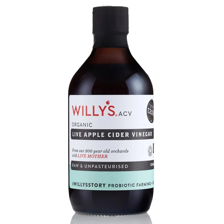 【≪ Willy's ACV≫ オーガニックアップルサイダービネガー】 オリジナルフレーバーは、中でも一番ベーシックな、リンゴのみで作ったこの商品は一般的なりんご酢に比べて口当たりがまろやかなのが特徴です。 飲料として、調味料として、スキンケア用として汎用性も一番高いベーシックな商品です。自然な甘さとまろやかな酸味が特徴です。 美味しさもお墨付きで、 イギリスの Guild of Fine Food(英国ファインフード協会) が主催する、世界的に権威のある食品・飲料の味覚審査コンテスト であるGREAT TASTE AWARDにてWilly’sのオリジナルは「特別に美味しい」とされる二ツ星を獲得しています。 非加熱・無濾過、そして酸化防止剤不使用のスペシャルな逸品です。 「Willy’s入門編」 「腸活ドリンクとして活用したい」 「シンプルなアップルサイダービネガーとして」 レシピは無限大です! ・ソーダやリンゴジュースで割って毎日腸活 ・オリーブオイルとシーソルト・黒コショウを合わせてドレッシング ・ピクルス ・レモンの代わりに揚げ物や唐揚げに ・そばつゆや味噌汁に少しだけ入れて ・お肉料理にかけて ・マヨネーズと合わせてポテトサラダ 原液で1日25ml摂取することをおすすめしているので、500mlで約20日分、50mlで約2日分を目安としていただくと、500mlでも決して多すぎません。 瓶の中には酵母菌の'マザー'がたっぷり!召し上がる前は瓶を上下に振って'マザー'が全体に行き渡るようにしてください。 【Willy’sの魅力】 イギリス中西部の広大な敷地で摂れた有機りんごと自然栽培のりんご48種類から作ったアップルサイダービネガー(りんご酢)・バルサミコ酢ブランドです。 リンゴ自らのチカラでお酢になるアップルサイダービネガー、自ら発酵していく過程で「酵母菌」が発生します。その酵母菌を非加熱・無濾過で生きたまま入っています。 瓶の底に沈殿しているのが「生きた酵母菌」(イギリスではマザーと呼ばれています)です。 免疫力アップ・代謝アップが期待できるといわれている「生きた酵母菌」。 瓶を振りながら酵母菌を呼び起こし、身体に取り入れることによって毎日の腸活に。 免疫力アップ・代謝アップ、血糖値を抑える役割も。 そして、お肌や髪の毛や爪のコンディション改善にも期待ができるといわれています。 毎日美味しくウェルネスに、内側からも美しく。