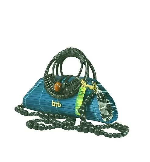 【かごバッグ】バンブーバックス・バンブーミニメロンバッグ ターコイズ