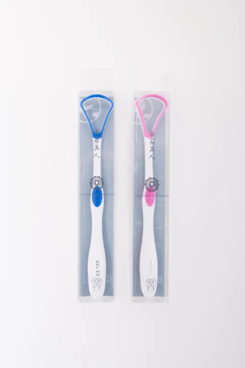 ⻭科医院で使用される最高品質の舌クリーナー 口臭の大きな原因となる舌苔をしっかりかき出します ①プラスチックとシリコンのハイブリッド構造で舌に優しく、簡単にしっかり菌をかき出す! 舌は絨毯のような毛足の構造(絨毛状)になっていて、 スキマに菌がたくさん潜んでいます。 舌苔美人はこの菌たちをかき出すために 鋭い接触面でありながらも舌を傷つけ ないような設計に。 弾力のある素材と刃部の角度により、 効率よく舌面をクリーニングできます。 ②ブラシタイプのものよりも洗いやすく、 お手入れも簡単!衛生的です! ★汚れが集まる、舌が綺麗になっていく状況が確認 しやすいので鏡を見ながらの使用がおススメです!