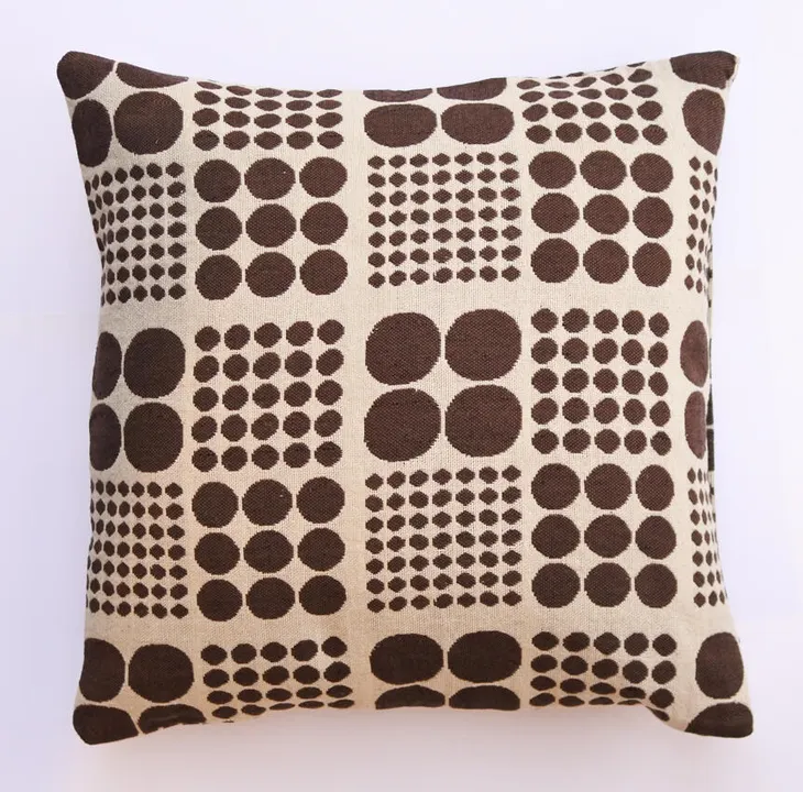 ジャガード織 クッションカバー「ダイス」 白地に茶色
