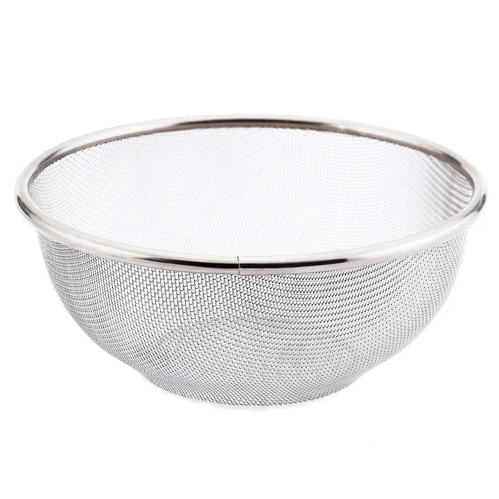 16メッシュの細かな網を使用したざるです。脚が本体と一体型で、洗いやすい形状です。 にちにち道具ステンレスボウルシリーズとぴったりサイズで使用することができます。