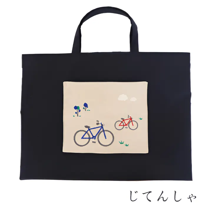 布製刺繍レッスンバッグ(バレリーナ/じてんしゃ) B4サイズ マチ無し じてんしゃ