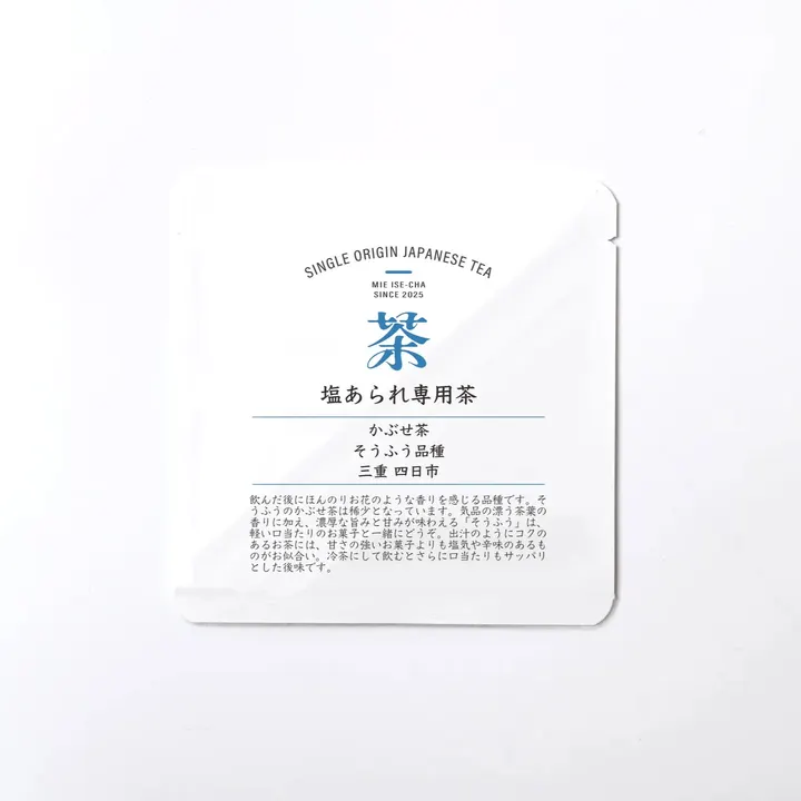 飲んだ後にほんのりお花のような香りを感じる品種です。 そうふうのかぶせ茶は稀少となっています。気品の漂う茶業の香りに加え、濃厚な旨みと甘みが味わえる「そうふう」は、軽い口当たりのお菓子と一緒にどうぞ。 出汁のようにコクのあるお茶には、甘さの強いお菓子よりも塩気や辛味のあるものがお似合い。冷茶にして飲むとさらに口当たりもサッパリとした後味です。 ◆商品パッケージについて 白を基調としシンプルで洗練された上品なパッケージデザインとなっています。 ◯◯専用茶として提案することでペットボトル茶が普及している現代において、暮らしベースで日本茶に触れる機会を増やしていただきたいと考えています。 ◆美味しい淹れ方 「暮らしの専用茶」は本格的な日本茶を、驚くほど簡単に淹れることができます。コーヒーのドリップバッグの要領でカップにバッグをセットしたら、水やお湯を注ぐだけ。日本茶ならではの色・香り・風味を楽しむ豊かな時間を。 水出しでも簡単に淹れることができます。水出しではお湯も急須も必要無し。暑い季節にもおすすめです。 ※お湯で淹れる場合は80度程度に冷ましてから注いでください。(焙じ茶は熱湯のまま注いでください)日本茶ならではの豊かな香りがドリップバッグから立ち上ります。また、ドリップバッグは3煎目まで楽しめます。1煎目は華やかな香り・しっかりとした甘み、2煎目は優しい香り・さっぱりとした苦みなど、煎ごとにお茶の風味が変わります。淹れるごとにドリップバッグのお湯を切り3煎まで楽しんでください。 すっきりとした煎茶の香りや芳しい焙じ茶の香りがふわっと広がり、空間を豊かに満たしてくれます。 お湯温度:80℃ お湯の量:80ml / 煎(3煎目まで美味しくお愉しみいただけます) 抽出時間:60秒 ◆伊勢茶について 三重県での茶の栽培は、栽培面積、荒茶生産量のいずれも静岡県、鹿児島県に次いで全国第3位を誇ります。 三重県は南北に細長く、西に鈴鹿山脈や大台ケ原山地、東に伊勢湾や太平洋などの、山あり海ありの自然に恵まれた地形をしていることもあり、各地で特色のあるお茶が生産されています。全国的に生産されている煎茶だけでなく、県北部では「かぶせ茶」、県南部では「深蒸し(ふかむし)煎茶」が生産されています。 三重県茶業会議所(生産者団体と茶商工業団体、茶市場等で構成)では、消費者の信頼に応えるため、「安全安心な伊勢茶づくり運動」を推進しており、生産履歴の記帳や製茶工場の衛生管理などの安全安心対策に取り組んでいます。また、平成14年に伊勢茶ガイドライン(自主規定)を設けるとともに、平成19年には三重県産100%の緑茶として「伊勢茶」が地域団体商標に登録されており、伊勢茶のブランド化に取り組んでいます。
