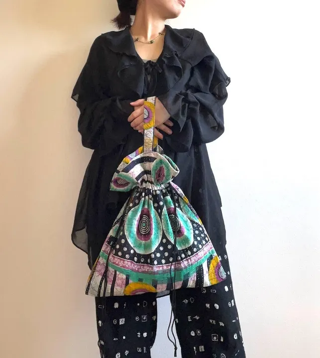 500mlのペットボトルも楽々入る大容量巾着バッグです。 荷物が多いけど、可愛いバッグを持ちたい方におすすめです。 カンタの柄や色味もポイントに、とても目を惹くアイテムです。