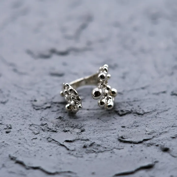 Ring from mass collection 水滴がはじけ散らばったような左右でデザインが違うオープンリング。 ユニークなデザインは、コーディネートのポイントに◎