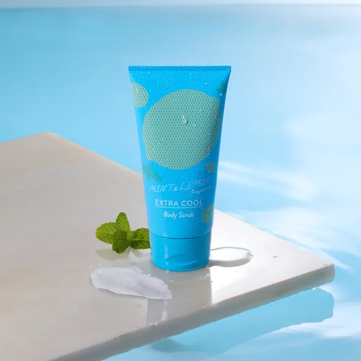 ひんやり冷感アロマのミント&レモンシリーズ。 メントール(清涼成分)配合で洗いあがりがひんやりするソルトスクラブです。 週1回~2回のスペシャルケアで肌を滑らかに。 ペパーミント精油、レモン精油(すべて芳香成分)配合の清涼感のある香り。 チューブ容器の為、水が入りづらく衛生的で部位に合わせて必要量を取り出しやすい設計です。
