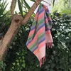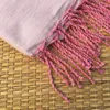 サイズ:約100×200cm 素材:コットン綿 こちらはスタンダードなタイプで、いろいろな使い方がしやすい大きさです。 天然素材コットン100%クロス チュニジアのハマム(トルコ風呂)だけでなく、地中海リゾートのスパセンターでも大活躍なフタFouta 、もともとはハマムを利用するおじさんの大判腰巻です。 いまや色やパターンも楽しくなって、様々な場面で利用されるユニバーサル布に! 湿気の多い日本では乾きにくい、かさばるタオル生地は不要です。 ヨーロッパの方は布使いがとても上手なので、お土産屋さんではこのフタを何枚も購入するというくらい人気があります。 フタの利用法・・・一度タオル代わりに使ってみてください! お部屋では、テーブルクロスやソファーカバー、目隠ししたいところへサッと広げて掛けてみたりもいいですね。 ベッドカバーとしても。コットンの優しい肌触りで滑らかなので敏感肌な赤ちゃん用のタオルケット としてもオススメです。 すぐにお洗濯ができ、乾きも早いので便利です。 手芸好きな方は、ちょっと手を加えてカーテンやクッションカバーなどにも変身させたりと布地としての活用もできます! 屋外では、ピクニック、アウトドアにシートとして。 海辺のバカンスではタオル代わりはもちろん、日よけに。すっと敷いてシート代わりにも。 大判でたっぷりと巻けるのでヨーロッパの方は肌寒いときにはストール代わりに、ひざ掛けなどの活用もOK! ひとつ旅に持っていくにも非常に便利です。