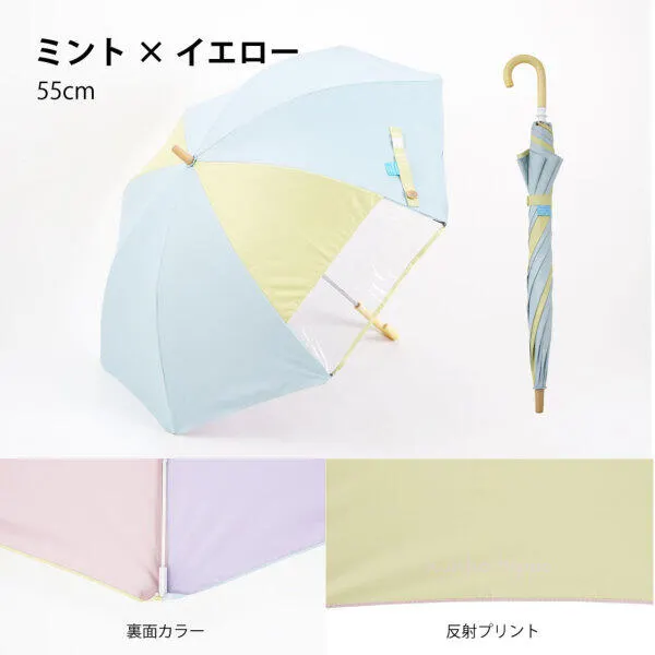 キッズ晴雨兼用日傘【子ども日傘/マルチカラー4カラー/50cm/55cm】 55cmミント×イエロー