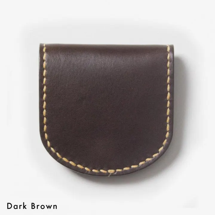 ◉手縫いのステッチが印象的なナチュラルな革のコインケース◉ - 手縫いで制作するシンプルな馬蹄型のコインケース。長く使って頂けるように丈夫な革を一針一針、丁寧に縫いあげています。手仕事の温かみが感じられるハンドメイドのコインケースです。 小銭を蓋にスライドさせて取り出します。 100円玉が35枚ほど入ります。硬めの革を使用していますが、使うほど革が柔らかくなり馴染んでいきます。 - ■サイズ H8.5×W8.5×D2.0cm ■素材 牛革(スムース)・真鍮・麻糸 ■原産国 日本 - ご注意 ※植物性タンニン鞣しの革を使用しているため、色むら、シワ等がある場合がございます。 ※写真はイメージです。撮影の状況、閲覧する環境によって⾊などが変わって⾒える場合があります。 ※Blackは黒、その他はキャメルの糸を使用します。