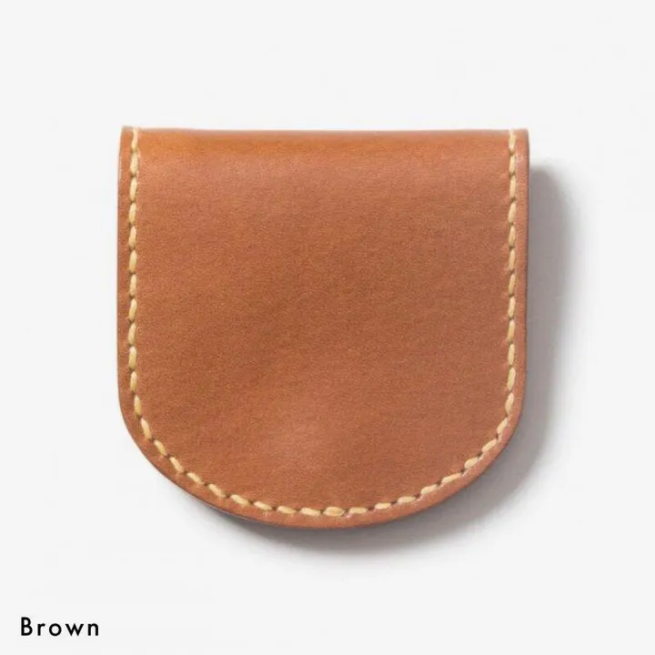 ◉手縫いのステッチが印象的なナチュラルな革のコインケース◉ - 手縫いで制作するシンプルな馬蹄型のコインケース。長く使って頂けるように丈夫な革を一針一針、丁寧に縫いあげています。手仕事の温かみが感じられるハンドメイドのコインケースです。 小銭を蓋にスライドさせて取り出します。 100円玉が35枚ほど入ります。硬めの革を使用していますが、使うほど革が柔らかくなり馴染んでいきます。 - ■サイズ H8.5×W8.5×D2.0cm ■素材 牛革(スムース)・真鍮・麻糸 ■原産国 日本 - ご注意 ※植物性タンニン鞣しの革を使用しているため、色むら、シワ等がある場合がございます。 ※写真はイメージです。撮影の状況、閲覧する環境によって⾊などが変わって⾒える場合があります。 ※Blackは黒、その他はキャメルの糸を使用します。