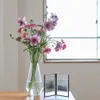 家を引っ越して、欲しくなったのは一輪挿しではない少し大きめのフラワーベースでした。今まで集めたリューズガラスの小ぶりなガラスベースと一緒に並べて置きやすいサイズ感を目指しました。口がすぼまったデザインのこのフラワーベースは、口の部分は細くウエストがキュっとなるように、頭はボリュームが出るように活けてもらうと美しく飾ることのできるデザインになっています。