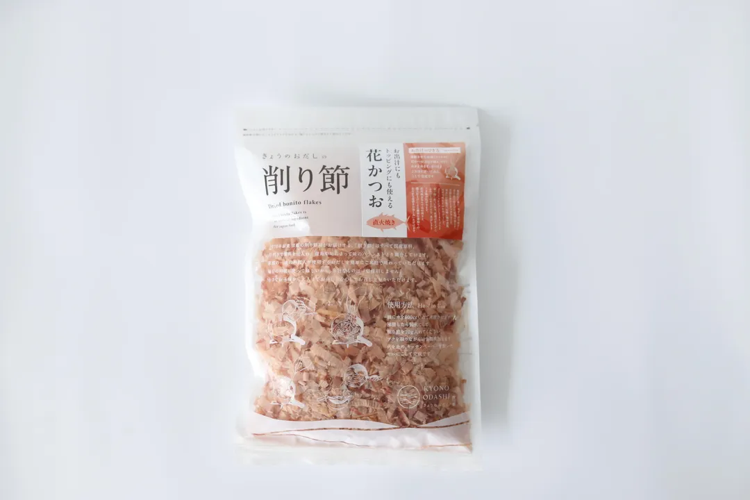 鰹節を一本ずつ直火で丁寧に焼き上げた後、繊細に薄削りした花かつおです。 直火焼きならではの芳醇な香りとすっきりとした味わいを兼ね備え、お吸い物・煮物・そばつゆなどのだし用途はもちろん、トッピングとしても幅広くお使いいただけます。